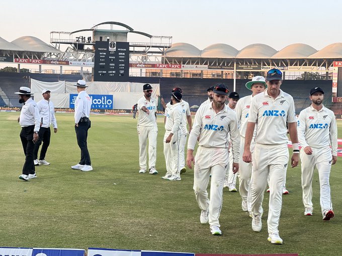 The third day of play in the second Test in Karachi ended with New Zealand taking a slew of wickets, thanks to Tom Latham’s two bombs. In a fading light lower-order collapse, Pakistan lost four wickets for 12 runs, but Saud Shakeel was unbeaten on 124 from 336 deliveries, his maiden Test century.