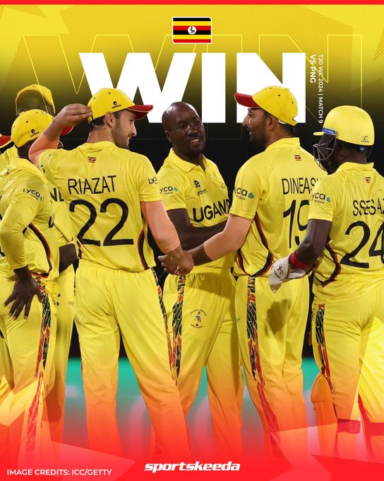 Uganda secured their first-ever T20 World Cup win with a thrilling three-wicket victory over Papua New Guinea. Riazat Ali Shah’s crucial 33 runs and Frank Nsubuga’s stellar bowling performance led Uganda to this historic achievement.