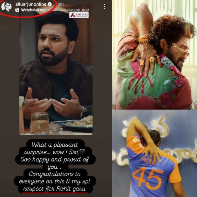 Allu Arjun shared an Instagram story to thank Rohit Sharma