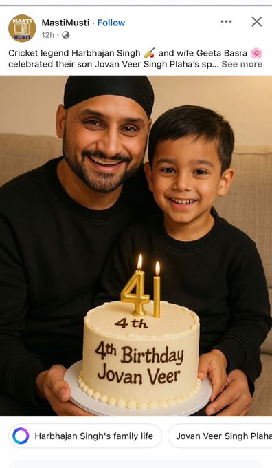 The former off-spin all-rounder of the Indian cricket team, Harbhajan Singh, has hit out on the social media platform for showing an AI-generated photo of his and Geeta Barsa's son, Jovan Veer.