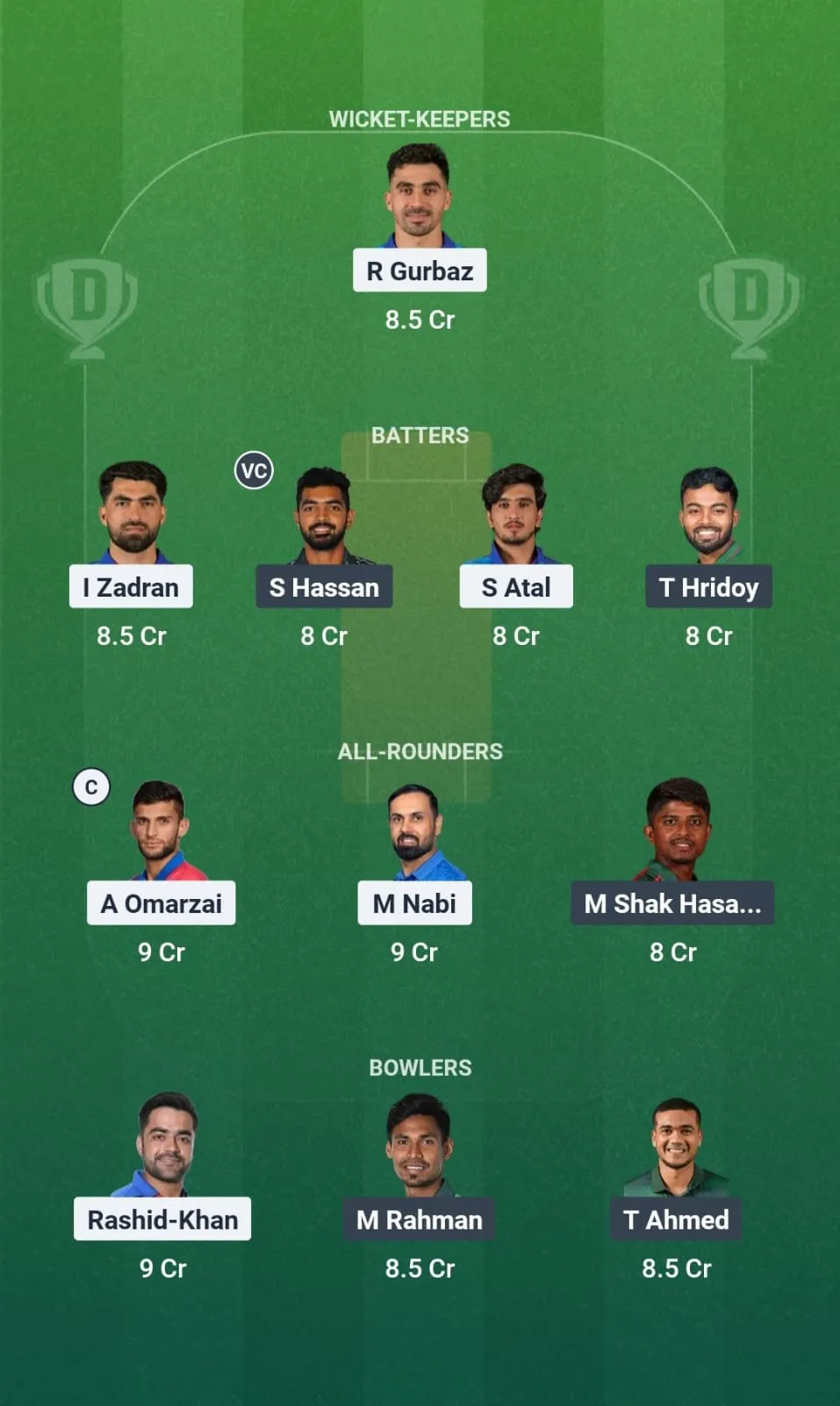Suggested Playing XI N0.1 for AFG vs BAN Dream11 Team: