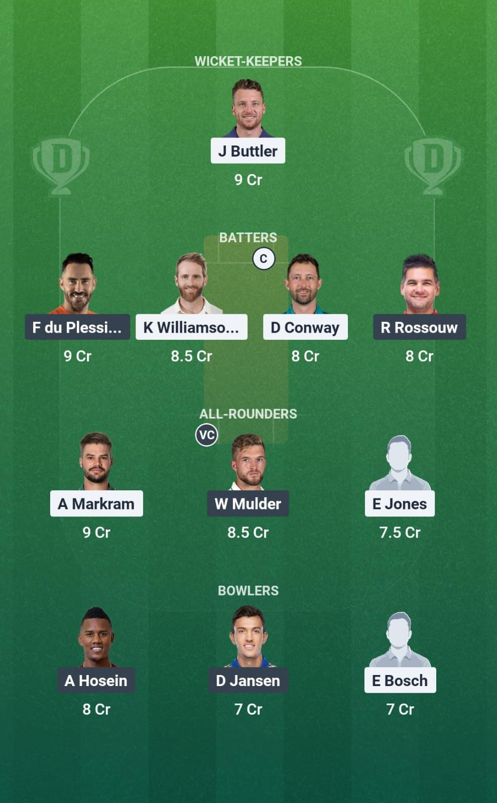 Jos Buttler, Devon Conway(C), Faf du Plessis, Kane Williamson, Rilee Rossouw, Wiaan Mulder(VC), Aiden Markram, Evan Jones, Eathan Bosch, Akeal Hosein, Duan Jansen
