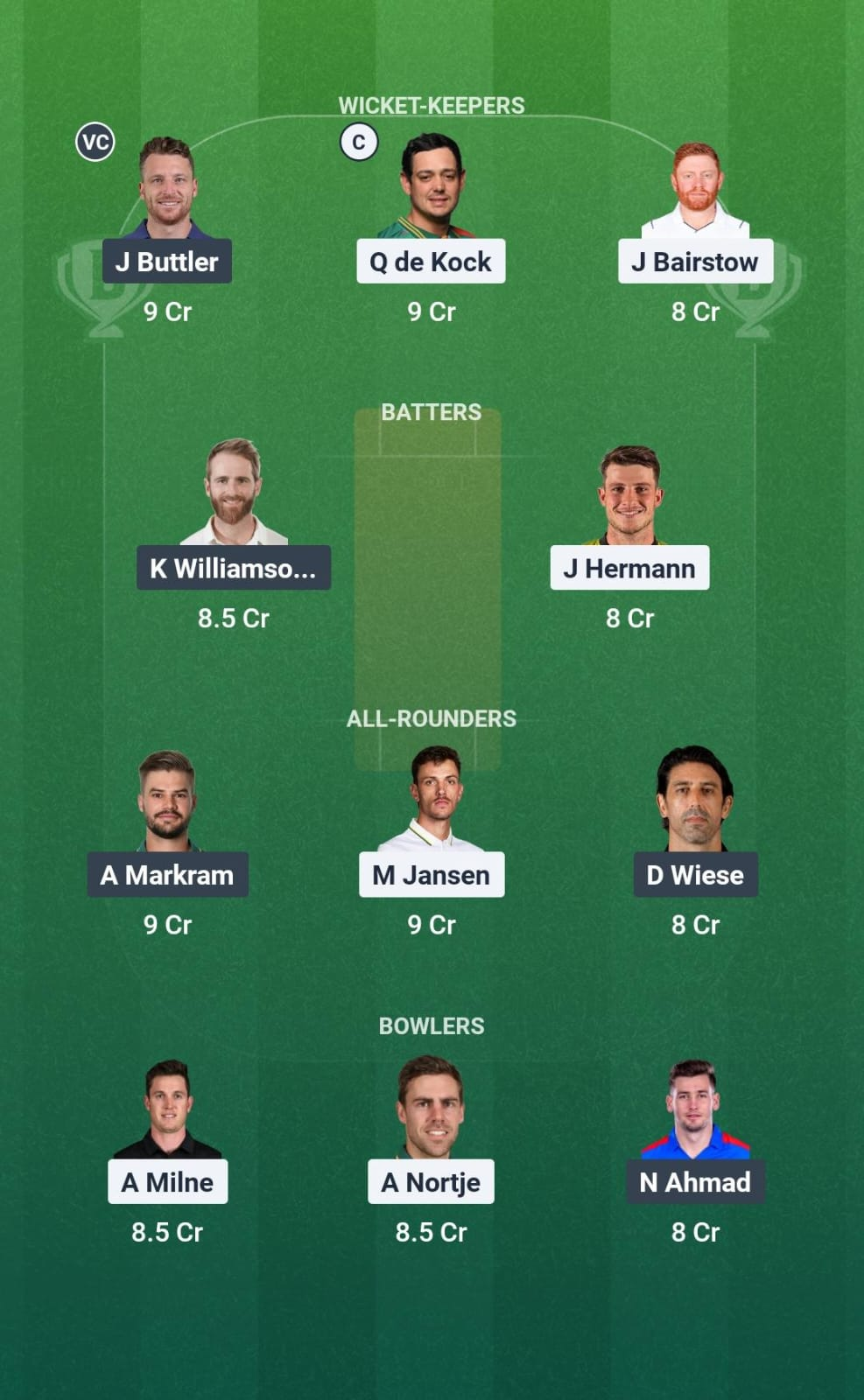 Jos Butler(VC), Jonny Bairstow, Quinton de Kock(C), Jordan Hermann, Marco Jansen, Kane Williamson, Aiden Markram, David Wiese, Noor Ahmad, Anrich Nortje, Adam Milne
