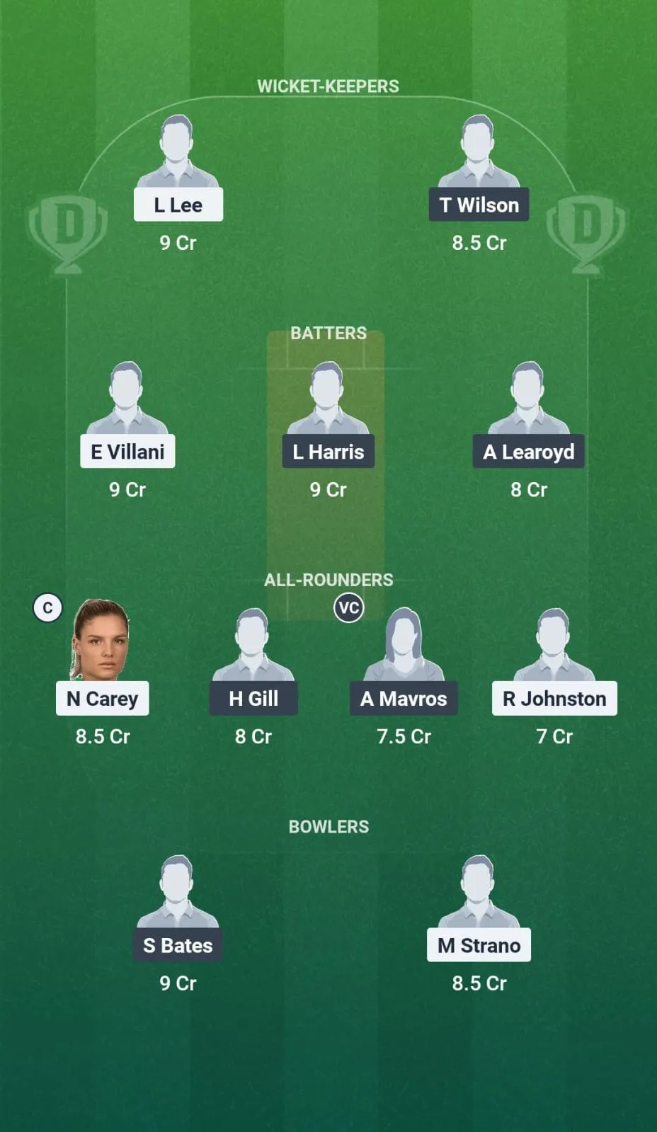 - Laura Harris – Laura Harris was the team's leading run-scorer in the first match against Canberra Women. She scored 48 off 20 balls with a strike rate of 240.