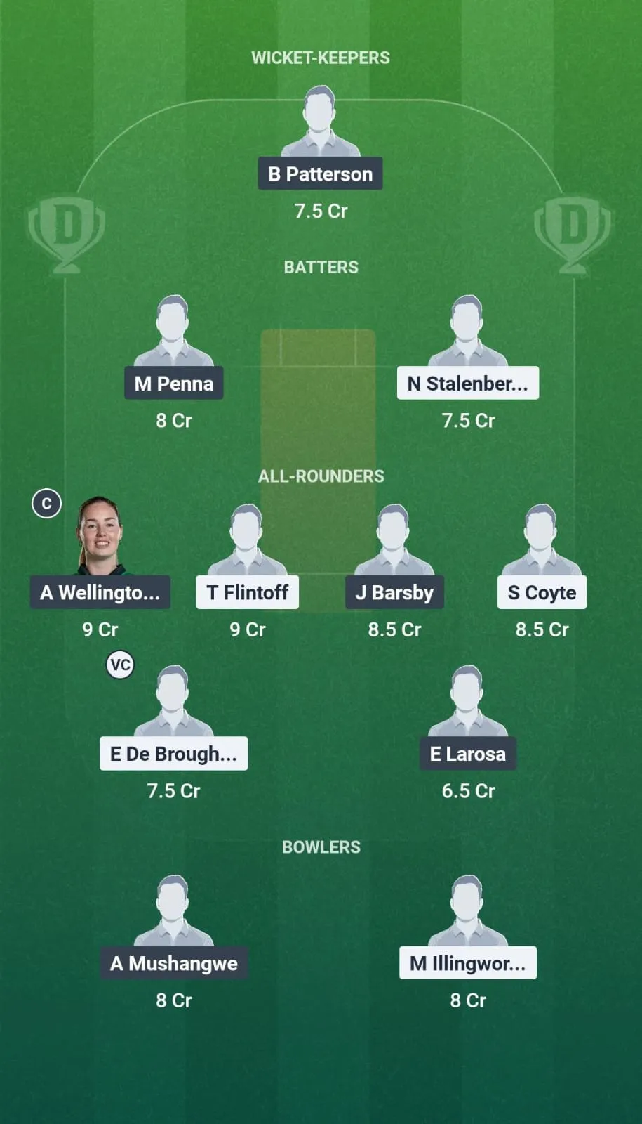 - Emma De Broughe – Emma De Broughe bowled 3 overs, conceding 8 runs and taking 2 wickets, at an economy rate of 2.67.