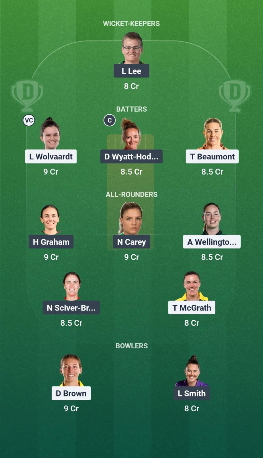 Lizelle Lee, Danielle Wyatt-Hodge(C), Tammy Beaumont, Laura Wolvaardt(VC), Amanda-Jade Wellington, Nat Sciver-Brunt, Tahlia McGrath, Nicola Carey, Heather Graham, Linsey Smith, Darcie Brown