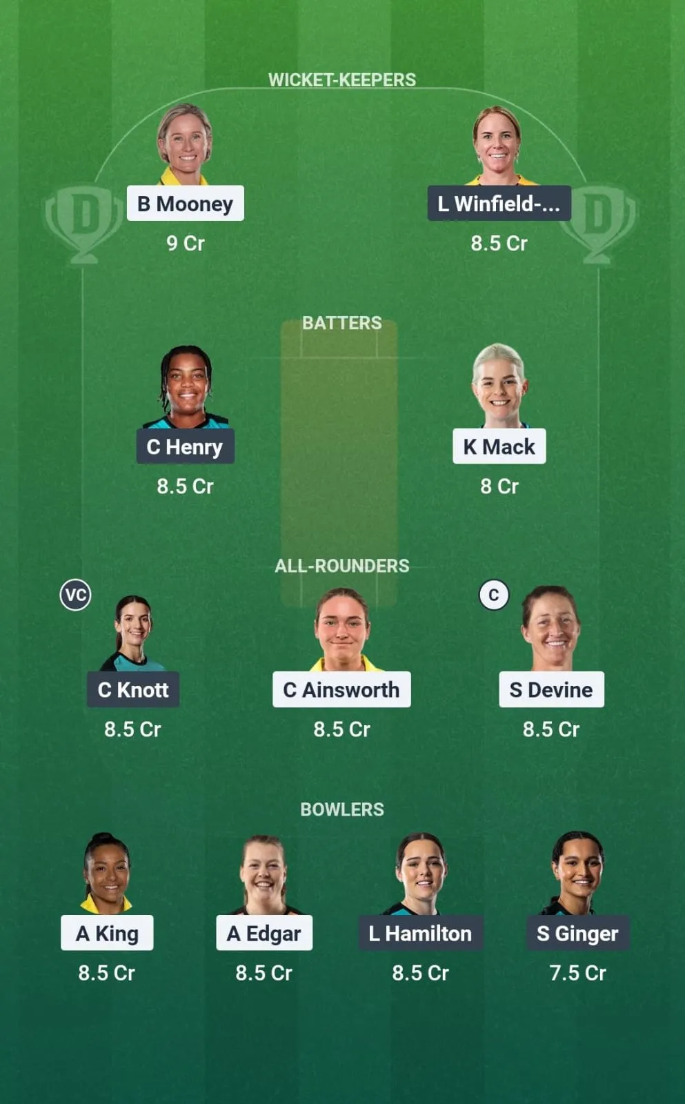 Captain – Sophie Devine, Beth Mooney
