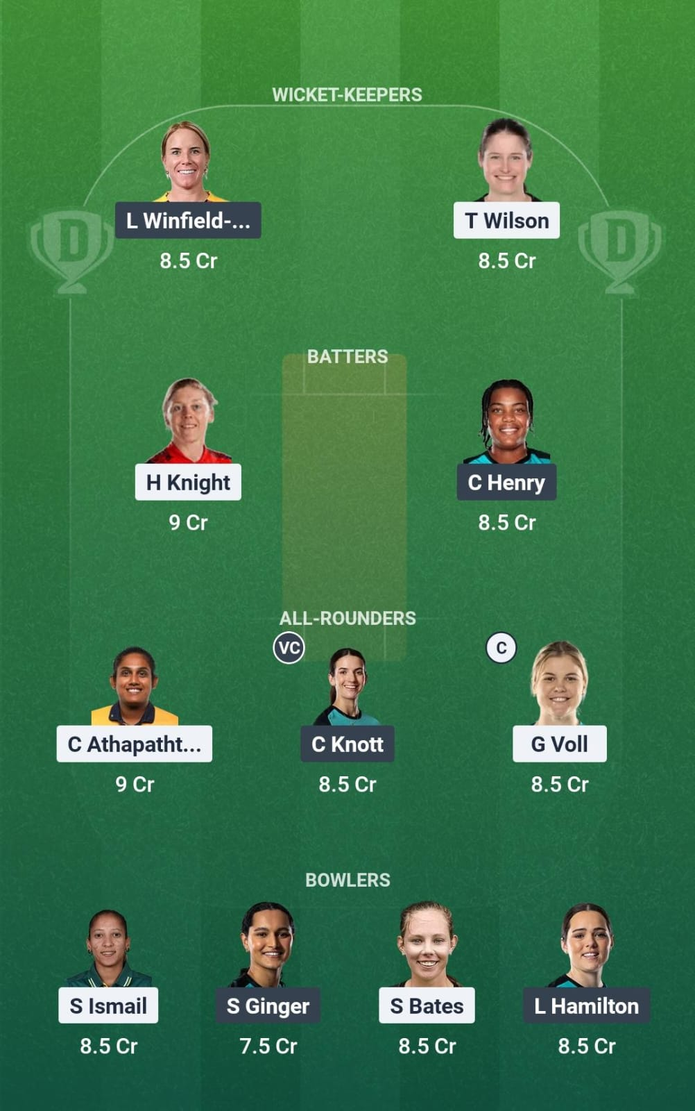 Phoebe Litchfield (c), Tahlia Wilson (wk), Georgia Voll, Heather Knight, Chamari Athapaththu, Anika Learoyd, Laura Harris, Lucy Finn, Taneale Peschel, Shabnim Ismail, Samantha Bates