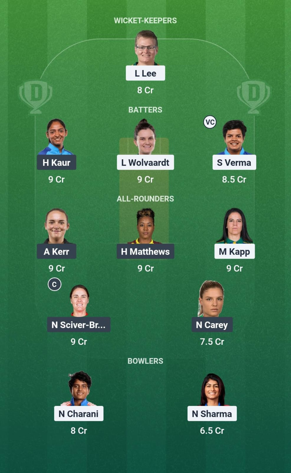 Lizelle Lee, Shafali Verma(VC), Laura Wolvaardt, Harmanpreet Kaur, Nat Sciver-Brunt(C), Marizanne Kapp, Nicola Carey, Amelia Kerr, Shree Charani, Hayley Matthews, Nandani Sharma