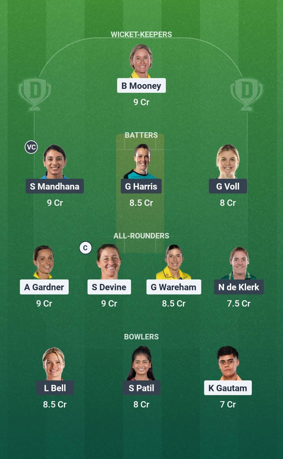 Captain – Ashleigh Gardner, Sophie Devine