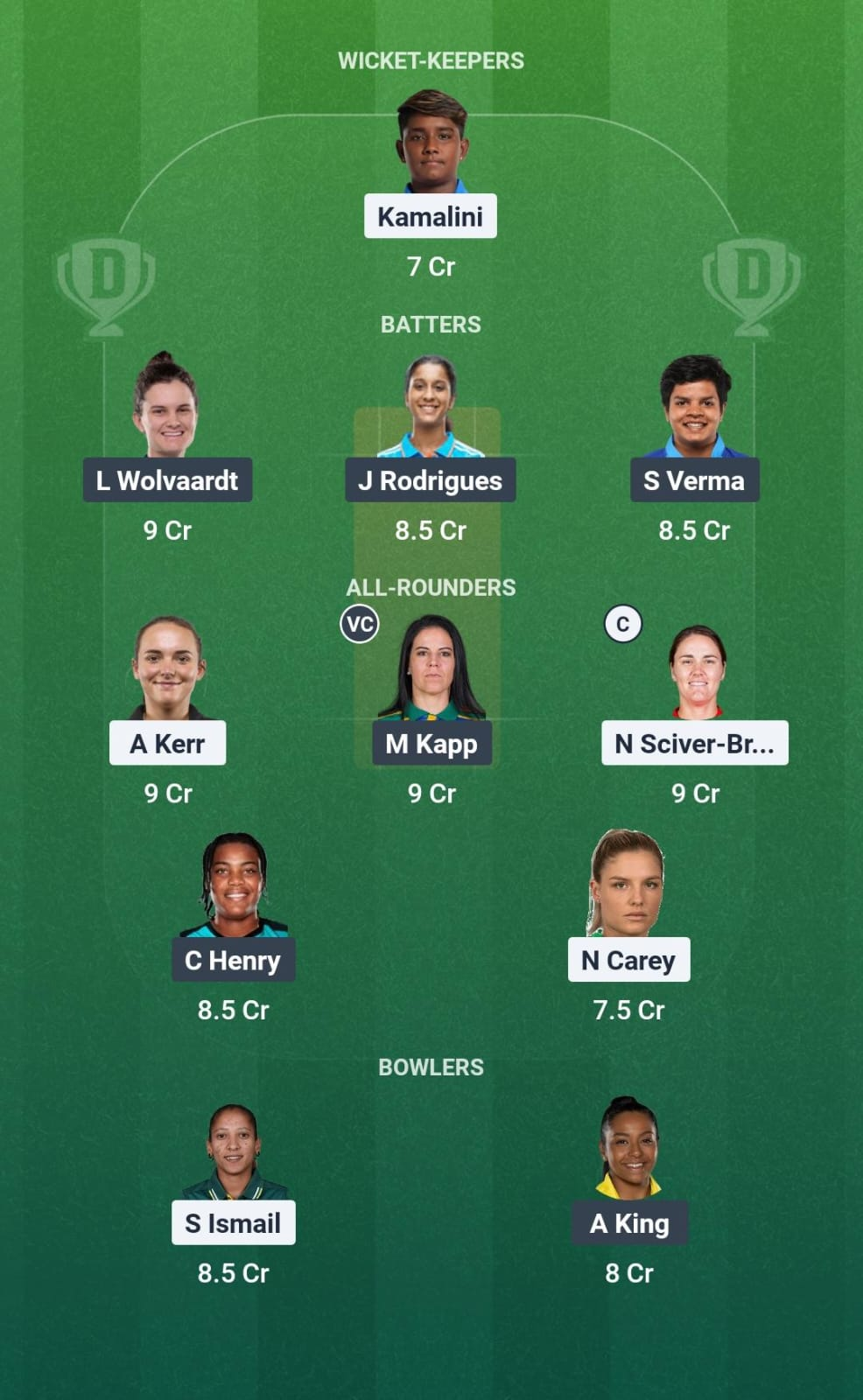 G Kamalini, Shafali Verma, Laura Wolvaardt, Nat Sciver-Brunt(C), Jemimah Rodrigues, Marizanne Kapp(VC), Amelia Kerr, Nicola Carey, Chinelle Henry, Alana King, Shabnim Ismail